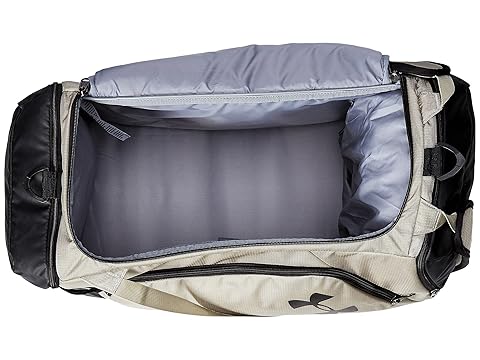 SKU: #8937724 Under Armour® has the perfect duffel for all your dynamic adventures. Converts to a backpack. UA Storm gear uses a DWR finish to repel water without sacrificing breathability. Adjustable, padded HeatGear® shoulder straps with integrated handle and sternum strap. Two large vented end pockets and one expandable pocket for laundry and shoes. Water-resistant valuables pocket is lined with soft microfiber to store electronics safely. Top grab handle. Water bottle side pocket for quick stashing and grabbing. 58% polyester, 42% nylon. Imported. This product may have a manufacturer#x27;s warranty. Please visit the manufacturer#x27;s website or contact us at warranty@support.zappos.com for full manufacturer warranty details. Measurements: Bottom Width: 21 in Middle Width: 21 in Top Width: 21 in Depth: 10 in Height: 12 in Strap Length: 35 in Strap Drop: 16 in Handle Length: 5 1?2 in Handle Drop: 2 in Weight: 1 lb 13 oz |