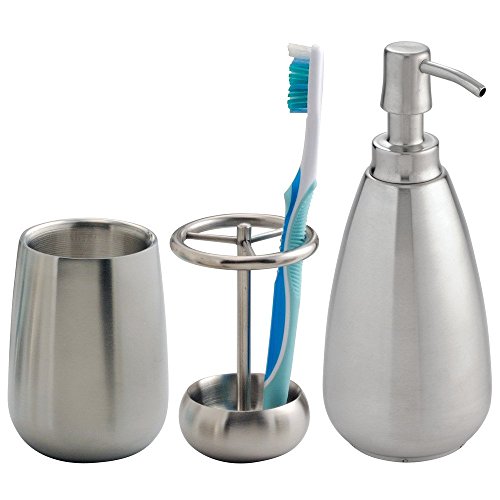 InterDesign Nogu Bath, Toothbrush Holder Stand for Bathroom Vanity Countertops - Brushed Stainless Steel