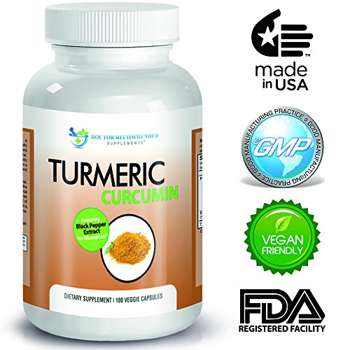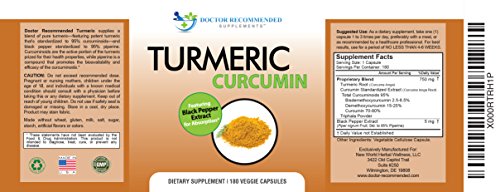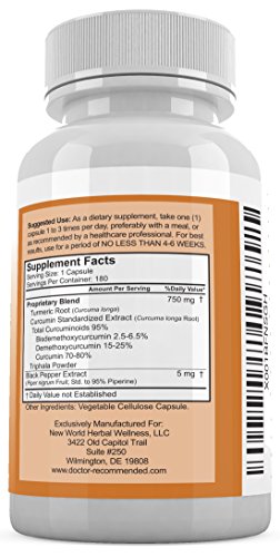 Turmeric Curcumin - 180 Veggie Caps - 95% Curcuminoids with Black Pepper Extract (Piperine) - 750mg capsules - 100% ORGANIC - Most powerful...