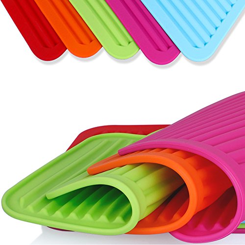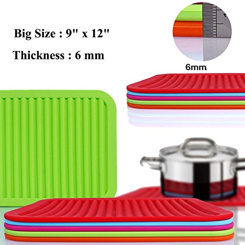 - SUOREMELY VERSATILES: Our silicone trivets are flexible, soft and heat resistant up to 450 F, can be used as a pot holder to grip hot pans safety or a mat to protect you kitchen counter surface from scalding cookware. It also function as a pitcher coaster, jar opener and spoon rest.