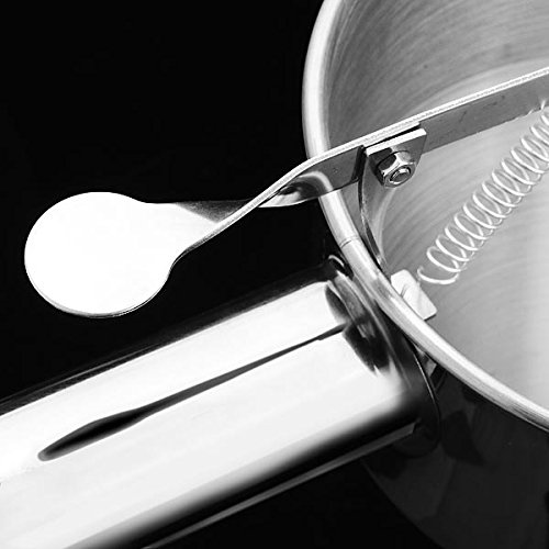 -. Feature : Material: Stainless Steel / Color: As pictures showed / Size: Funnel diameter: 13cm Height: 23cm Length of handle: 12cm / Weight: About 500g / Apply to the modern hotel kitchen, cake shop, bakery, soda fountain, fruit juice shop, high-end villa, modern home kitchen and so on. Funnel wall lars frosted surface treatment, convenient cleaning, effectively prevent scratches. Stainless steel and exquisite workmanship and perfect supplement, make the product show highlights the elegance of a mirror, feel is smooth, reveal the luxuriant temperament of metal. Gently press lever, slurry flow from funnel mouth, flat bar, white colloidal particles plug valve can prevent. Smooth edges without front, is your baking, produce exquisite dishes and dessert, a necessary thing in the world.