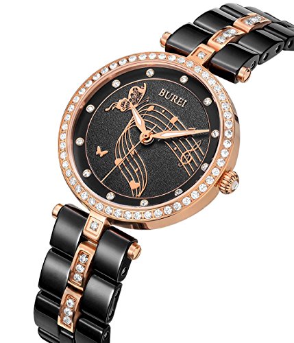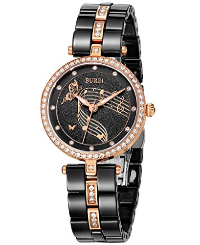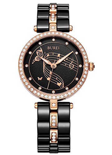BUREI(《바오쇼》) (바오쇼)BUREI 레이디스 손목시계 음악 모티브 아날로그 표시 야광 기능 심플 고전적인 디자인 화이트 세라믹 밴드 쥬얼리 손목시계 일본 쿼츠 무브먼트 화이트 문자판
