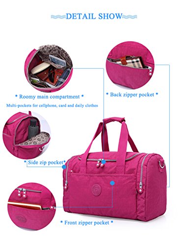 -. Brand : Oakarbo -. Department : unisex-adult (lage only) -. Feature : ROOMY COMPARTMENT: easy U-zip access to main padded compartment / OUTPOCKETS: 1 front pocket for handy essentials, 1 rear zip pocket, 2 side pockets for added storage, allowing you to easily store all your travel essentials / INSIDE POCKETS: 2 back wall zip pockets (cell phone and cards) / ADJUSTABLE SHOULDER STRAP: Top carry straps and a removable shoulder strap, allow you to wear the bag as a tote bag or crossbody bag / DIMENSION (L x W x H): 17.7 x 9.4 x 11.4 in | 45 x 24 x 29 cm; Weight: 1.6lb/0.71kg -. ProductGroup : Apparel -. ProductTypeName : LAGE -. Title : Oakarbo 17 Inches Nylon Carry-on Storage Travel Duffel Weekender Bag