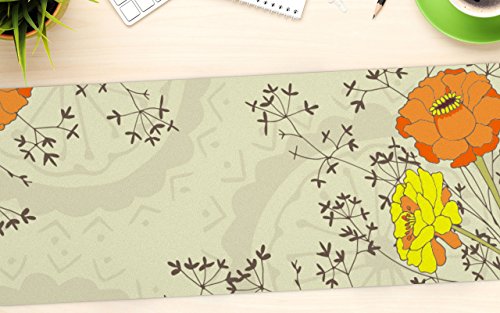 KESS InHouse Nandita Singh "Flowers and Twigs" Tan Orange Office Desk Mat, Blotter, Pad, Mousepad, 13 x 26-Inches