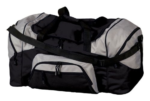 -. Binding : Apparel -. Brand : Port & Company -. Color : Black/Grey -. Department : unisex-adult -. ProductGroup : Apparel -. ProductTypeName : BAG -. Size : 17.5 x 3 x 14 inches -. Title : Port & Company Color Block Sport Duffel Bag, Black/Grey, One Size. BG99