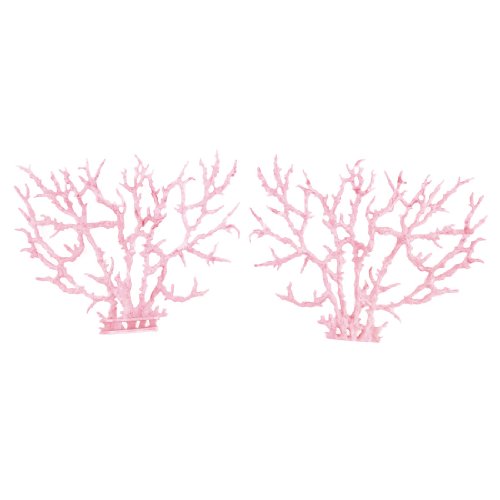 Uxcell 2-Piece Plastic Aquarium Coral Plant Set, 19cm, Pink