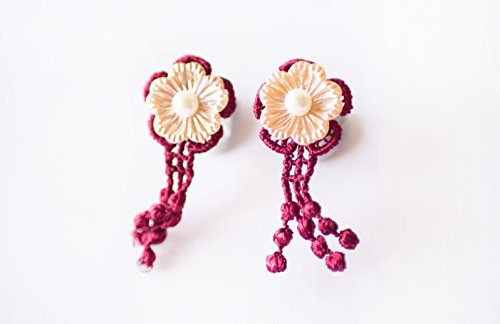 Handmade Lace Bride Earrings(Golden+Burgundy) : beaded earrings, handmade earrings, unique jewelry, handmade jewelry, jewelry earrings, wood piercing, DIY,clip on earrings, wedding earrings