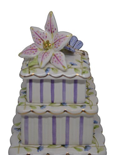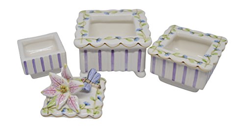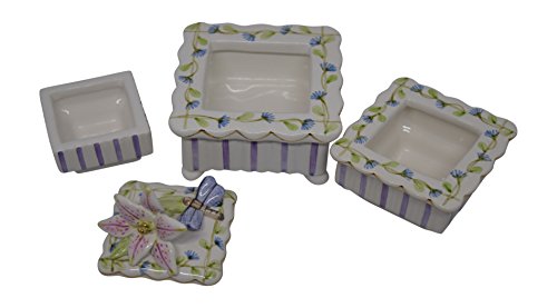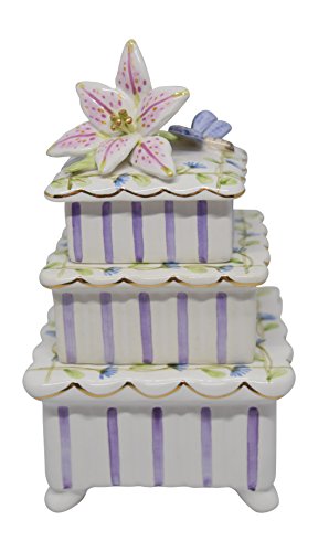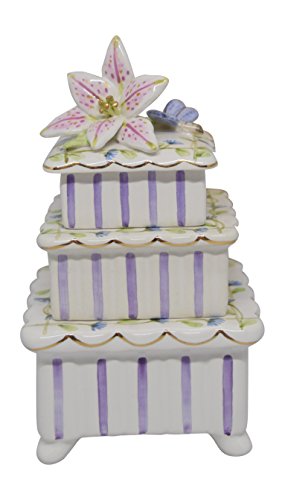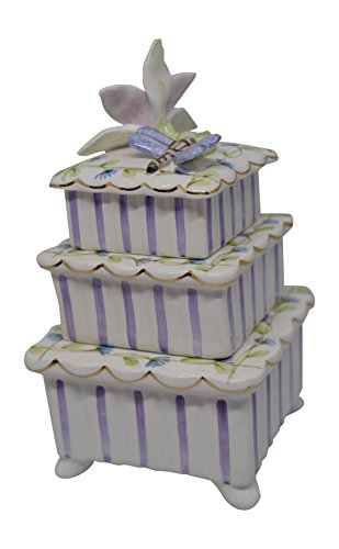 Annys 3 Tier Ceramic Keepsake Jewelry Trinket Box (Square Purple Stripe)