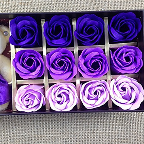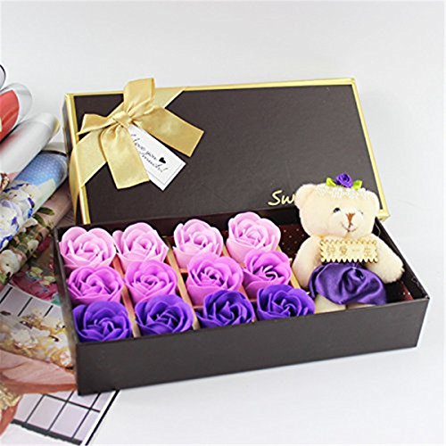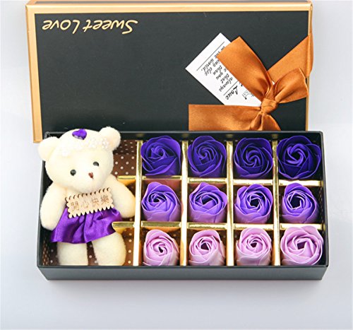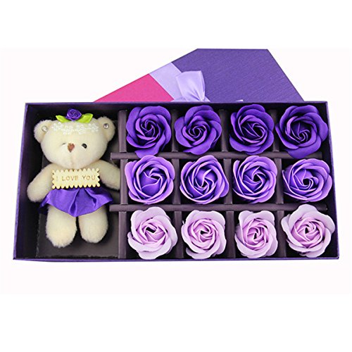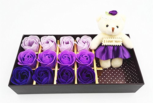 YYaaloa 12 Flora Scented Bath Soap Rose Flowers Preserved Purple gradient Rose Scented with Little Bear Doll in Gift Box for Valentine’s Day (12pcs Purple gradient)