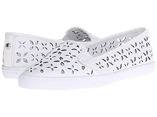 Slip on MICHAEL Michael Kors' Olive flats with a floral perforated design and pointed toe that pairs with skinny jeans for an updated weekend look. Pointed closed-toe slip-on flat sneakers Perforated design at upper 1/2" heel Vachetta/nappa leather upper; rubber sole