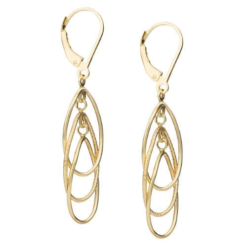 -. Title : 10k Yellow Gold Polished And Textured Interlocking Ovals Leverback Earrings
