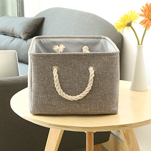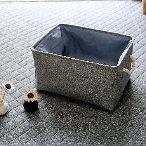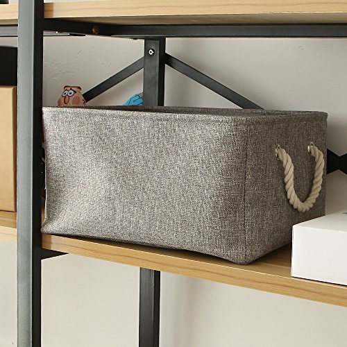 TheWarmHome Collapsible Rectangular Household Fabric Storage Organizer Basket with Handles for Kids,Grey