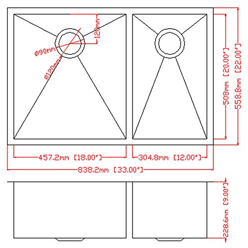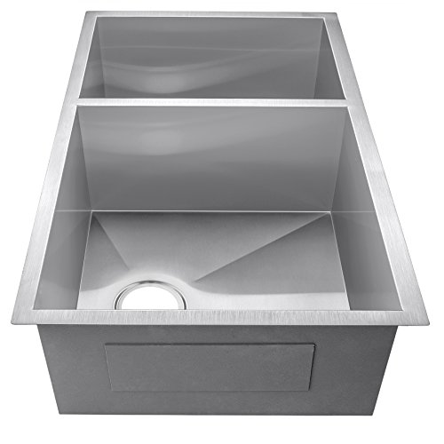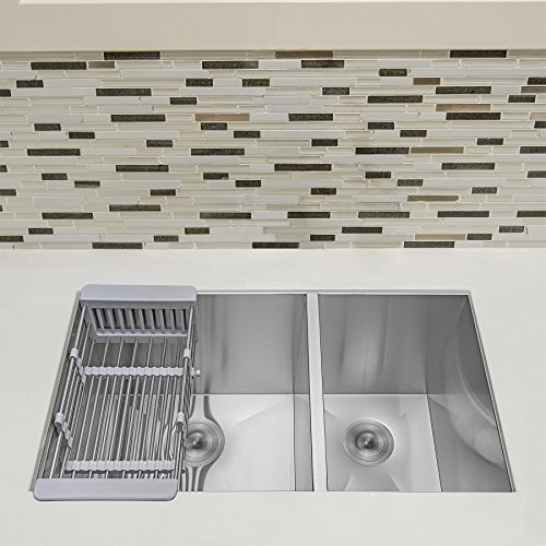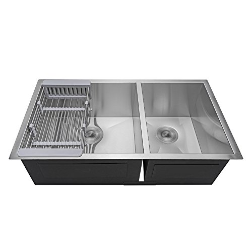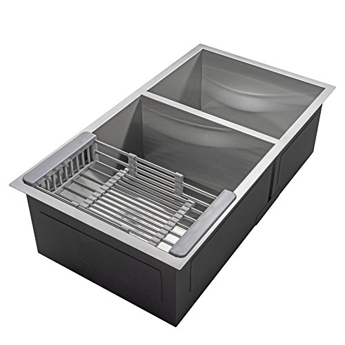 Firebird 33" x 22" x 9" Under Mount Handmade Stainless Steel Double Bowl 60/40 Kitchen Sink w/ Drain Strainer Kit Adjustable Tray