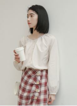 シンプルなデザインに襟元や袖口に施されたギャザーが女の子らしさをプラス☆