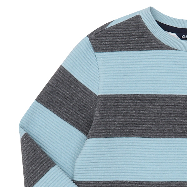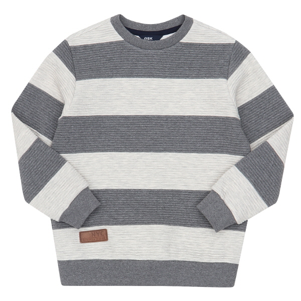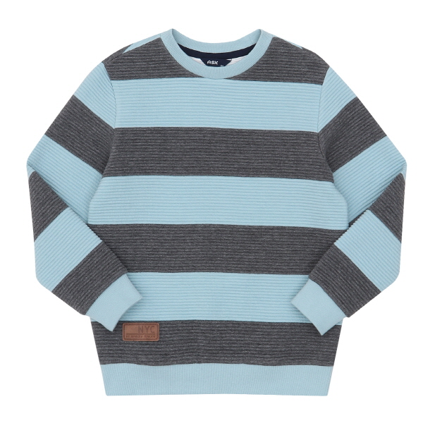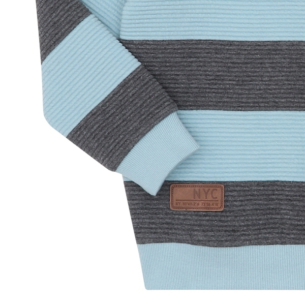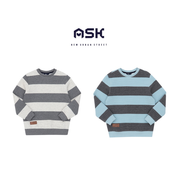 이중직카바링 소재의 스트라이프 유니 맨투맨 티셔츠로, 기존의 퀼팅지보다 가볍고, 보온성이 뛰어나며 밑단 가죽라벨로 포인트 준 아이템.