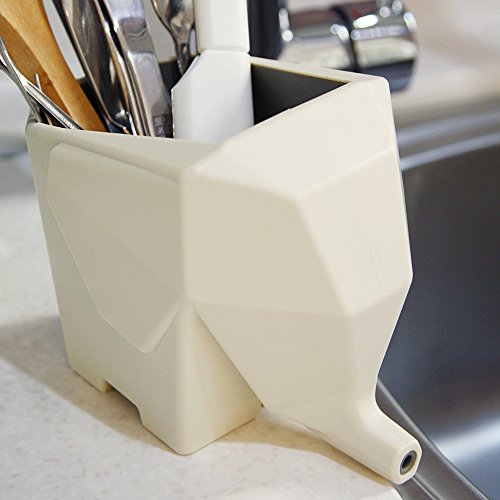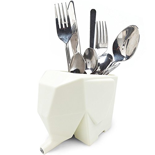 This elephant collects the runoff water and directs it back into the sink through his nose, with a tiny hole in elephant's nose, convenient to drain the water, cutest way to dry silverware