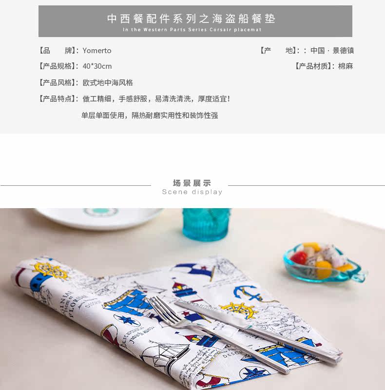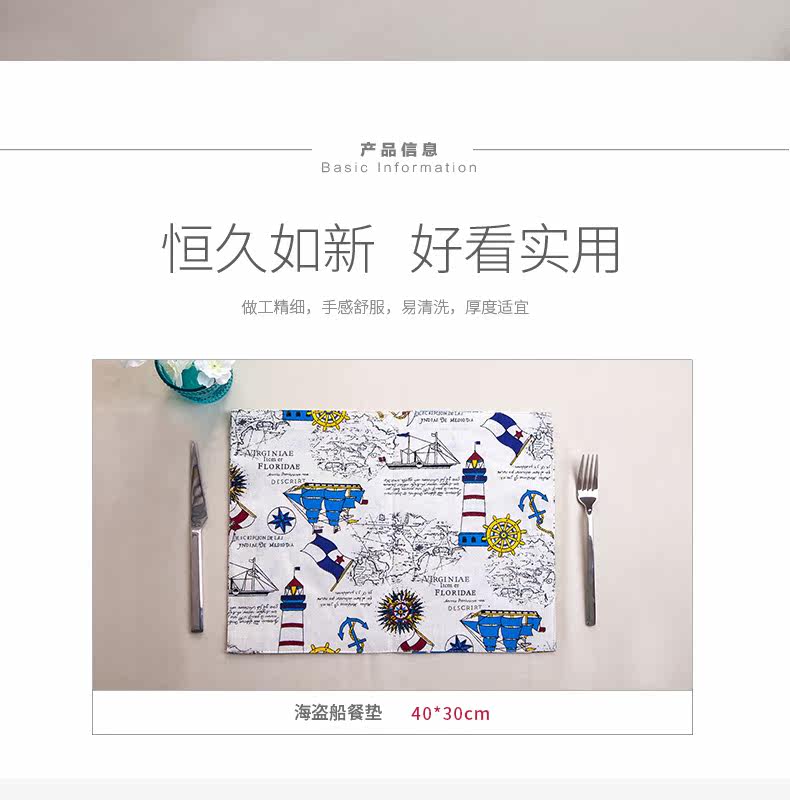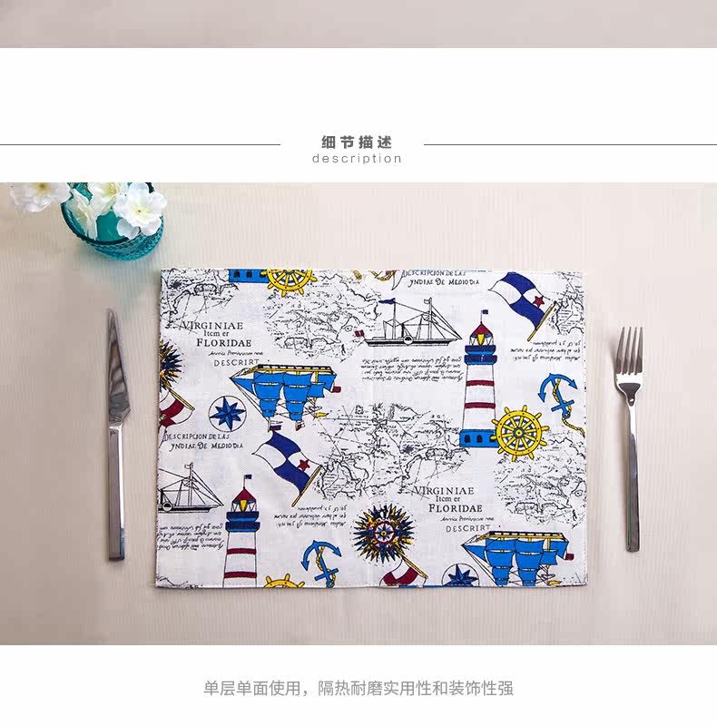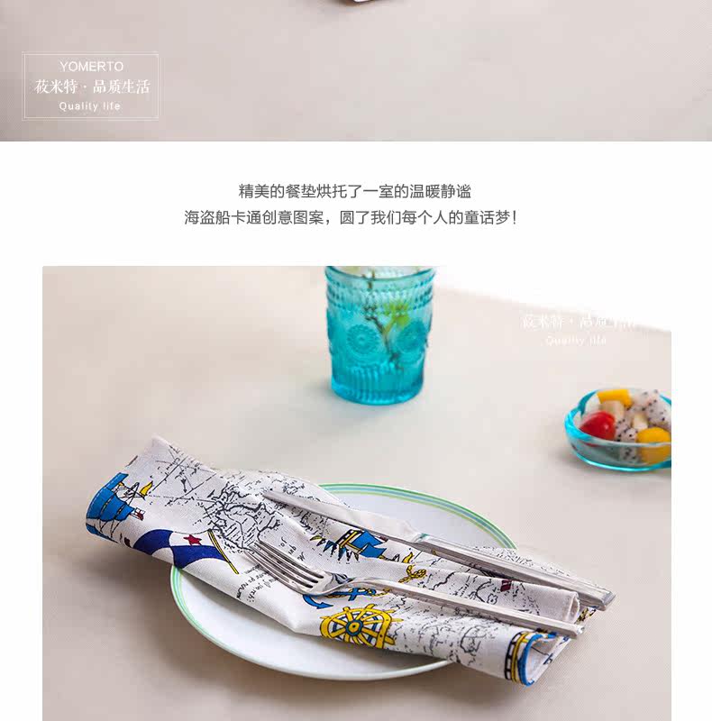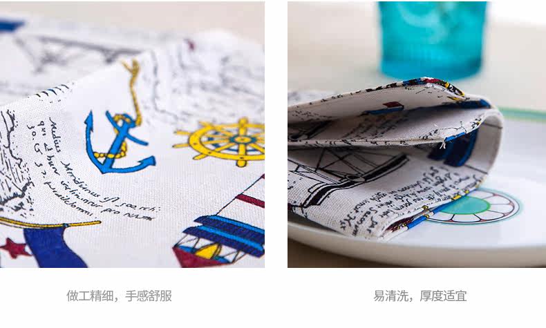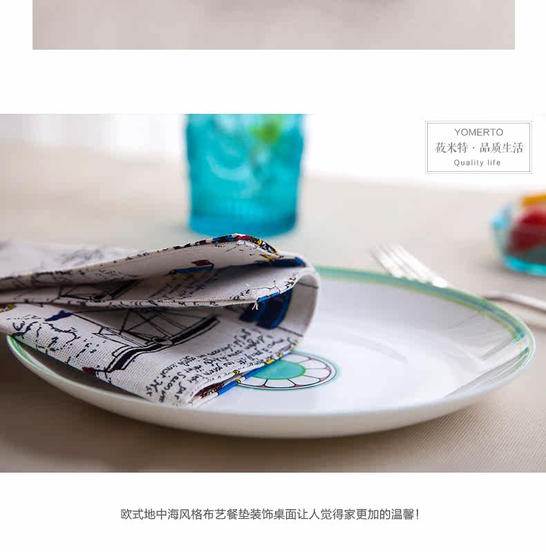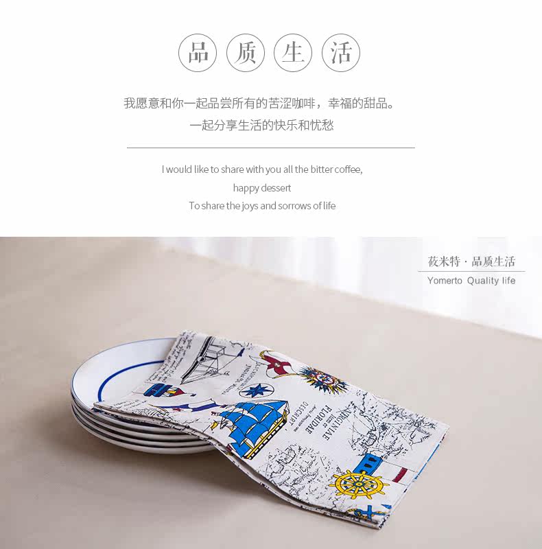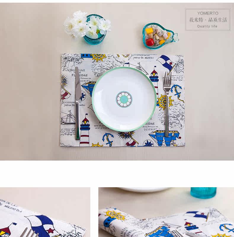 地中海式简约棉麻西餐餐垫餐布餐巾盖桌布隔热垫碗盘垫子卡通创意