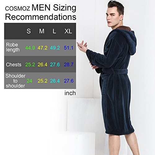 Stay warm with Cosmoz's new Men's Spa collection. Slip into this beautiful all season fleece robe and relax. Navy blue color hooded robe with brown trim. Styles with traditional patch pockets, double lops and belt.