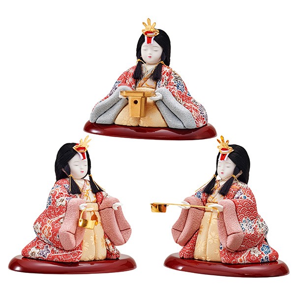 雛人形 一秀 三人官女のみ 単品 木目込み 横高さ10cm