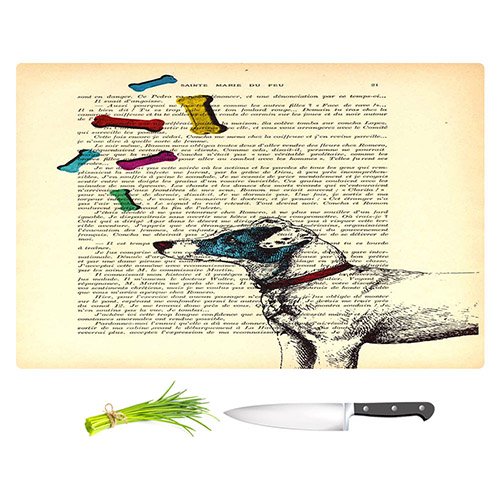 DiaNoche Designs CB-MadameMemJackRussell2 Madame Memento-Jack Russell Unique Kitchen Slicing Dicing Bar Artistic Decorative Cutting Boards from, Large 15" x 11"