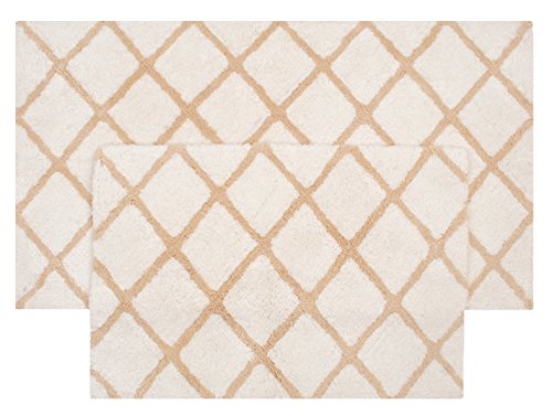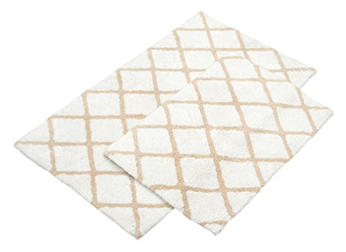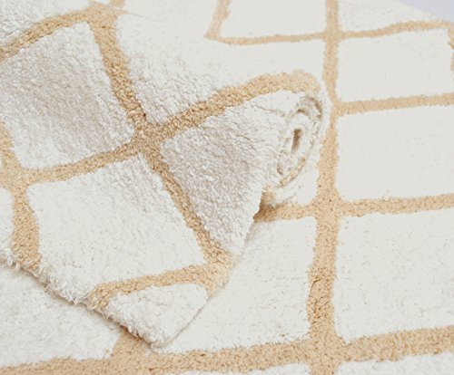 ATRIUM Bath Rugs Size 21 x 34 / 17 x 24 Non Skid High Absorbency & Durable Machine washable Bath Mat (Beige & White)