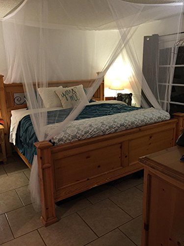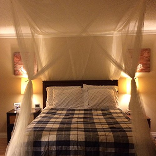I-Choice 4 Corner Post Bed Canopy Mosquito Net Queen King Size Netting Bedding White