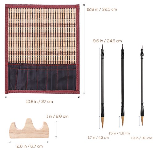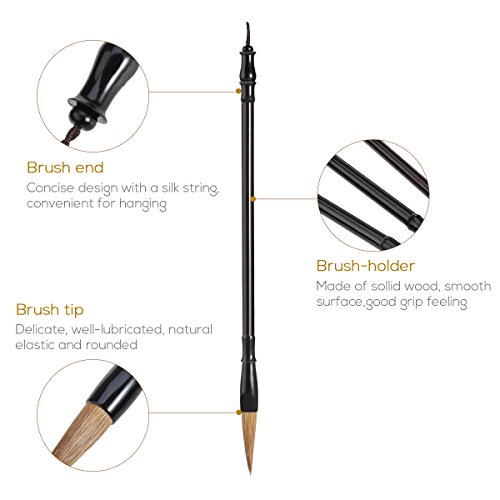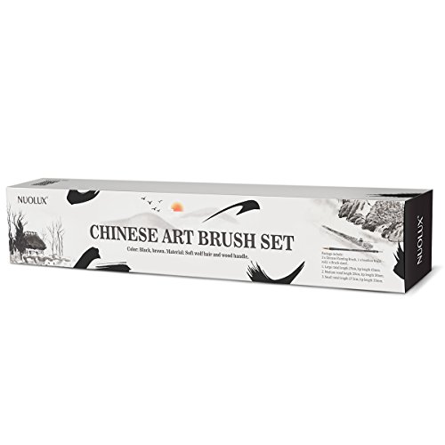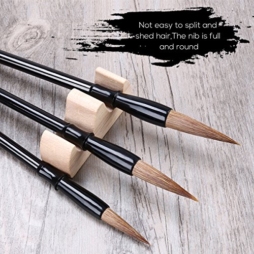 NUOLUX Excellent Wolf Hair Chinese Calligraphy Brush Kanji Japanese Sumi Drawing Brush(3 sizes with Penholder and Medium Pen Shade)