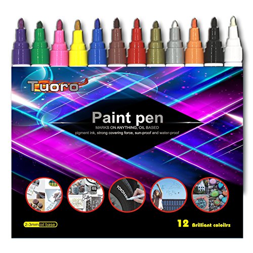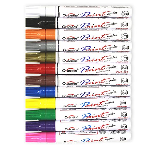 Permanent Paint Marker Pen - Medium Point - Aluminum Pen Body - Oil-based - Fine Tip Markers for Glass Painting , Ceramic , Rock , Metal , Wood , Fabric , Canvas , Set of 12 Colors