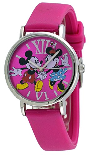 Disney MN1419 Unisex Pink Silicone Band Mickey and Minnie Mouse Analog Watch