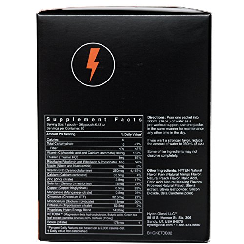 -. Binding : Health and Beauty -. Brand : Hyten Global -. EAN : 0720843999513 -. Feature : BURN FAT & BOOST PERFORMANCE - The ketosis inducing complex of patented beta-hydroxybutyrate (BHB) and Butyric Acid (BA) was designed for the specific needs of the ketogenic diet lifestyle to help you achieve ketogenesis and ketosis for peak athletic performance and results! Ketoboost is formulated to help support increased ketone levels while lowering glucose. Meanwhile improving athletic endurance, mental performance, sustainable energy, and fat burning in less than 15 minutes. / PATENTED FORUMLA - Ketoboost is the only ketosis supplement that suppresses glucose levels while promoting rapid ketosis and natural ketogenesis, the creation of ketones endogenously (in the body). / TASTY FLAVOR - A peach mango drink flavoring that tastes delicious. If you have tried other exogenous ketone supplements, many have a horrible taste. This ketone drink includes electrolytes and has a small amount of caffeine / ON THE GO & MIXES EASILY - Ketoboost tastes great with water only, and is convenient when traveling, in class or going to the gym. / KETO FLU + KETOGENIC SUPPORT - It's the perfect ketone electrolyte replacement drink mix and works to eliminate keto flu symp. These keto powder packets support by inducing ketosis rapidly. -. IsAdultProduct : 0 -. Label : Rhema Health -. LegalDisclaimer : Please consult your physician before taking Ketoboost. -. Manufacturer : Rhema Health -. MPN : 0200000001 -. PackageQuantity : 30 -. PartNumber : 0200000001 -. ProductGroup : Health and Beauty -. ProductTypeName : HEALTH_PERSONAL_CARE -. Publisher : Rhema Health -. Studio : Rhema Health -. Title : Keto Diet Supplement by Ketoboost | Exogenous Ketone Weight Loss Supplement for Instant Ketosis in 15 Minutes or Less – 30 Keto Powder Sticks -. UPC : 720843999513