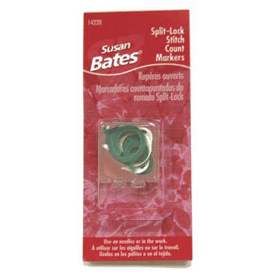 SUSAN BATES-Split Lock Stitch Markers. These split lock stitch markers from Susan Bates can be used on your needle or to temporarily mark a spot in knitted or crocheted fabric. This package contains one reusable plastic box containing fifteen pieces: ivory and green. Made in USA.Feature