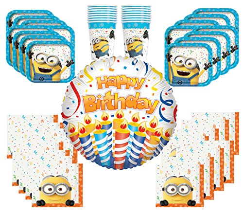 -. Title : 16 Guest Despicable Me Value Pack Party Supplies Bundle: Dinner Plates, Cups & Napkins, and Happy Birthday Balloon