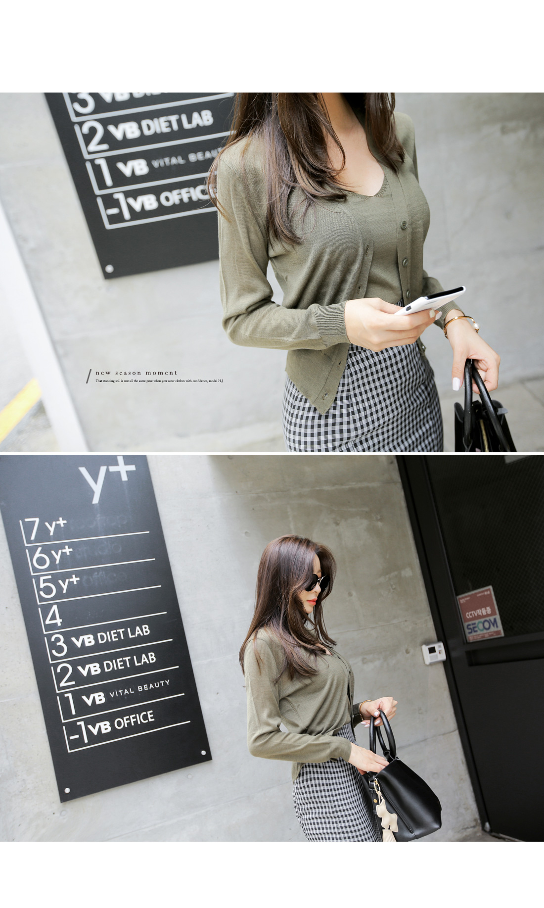 set로 구성된 가디건도 슬림하게 바디를 감싸 주었으며,