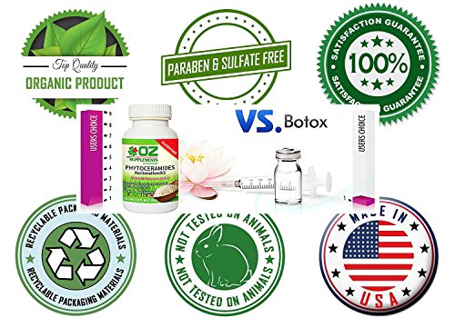 Your search for the best Phytoceramides is over! Oz Supplements is an anti-aging skincare company with medical doctors on it's board that stays abreast of anti-aging skincare breakthroughs. We are in the business of helping you to look and feel your best. Our commitment is to quality by C.O.A. lab testing all the raw materials we use. You will be amazed at how fast you will see results. Most customers give 5 star reviews because of baby soft and smoother skin results on their cheeks, face, hands and legs! Whole body results, not just your face! Fine lines fade quickly as glowing dewy skin and a youthful plumpness returns. Your friends start asking if you've "HAD SOMETHING DONE". *As you continue your daily regiment skin repair renewal happens on a Cellular Level. RELIEF from severe dryness, flakiness, redness, itchiness and embarrassment. Finally! You can socialize in public without hiding your hands and skin! Is that worth it to you? Other Phytoceramide Brands might look the same, but cheap 350mg LipoWheat or Sweet Potato Phytoceramides do not work the same. They don't compare to our Superior Clinical Results, that soon you will see from our concentrated dose of only our Patented Ceramide Formula. 100% Gluten-Free and Wheat-Free Phytoceramides made from Rice with 100% Recommended Daily Allowance of Powerful Antioxidants Vitamins A, C, D, and E that work with our plant-derived Rice Ceramides to repair and rebuild your skin on a cellular level. Most customers order 2 or 3 bottles to receive FREE delivery and not miss a daily dose. TRY IT RISK FREE Your Iron-Clad 2 Tier 100% Money Back Guarantee! If your friends & family don't notice a difference, ship it back and we will refund your money. If YOU are not happy with the results, ship back the empty bottles-again we will refund your money. Less than 100 Bottles Are Available At This Discounted about 70% OFF SALES PRICE, it sells out fast so CLICK the ADD TO CART BUTTON NOW!Feature