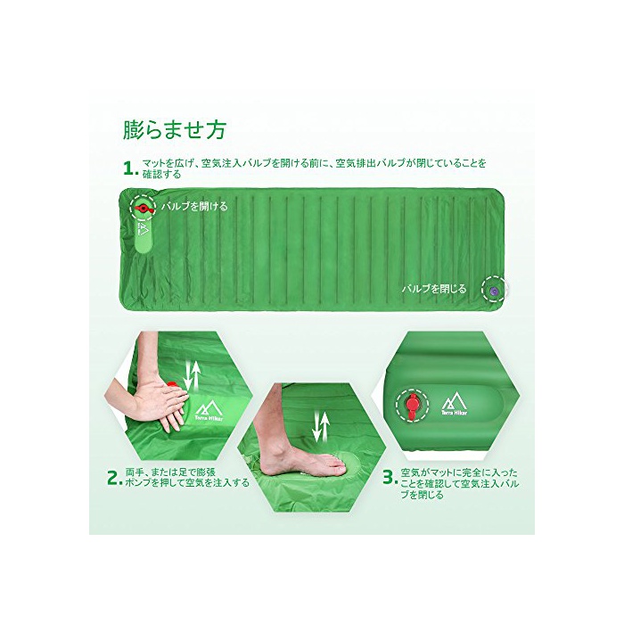 원본상품명: Terra Hiker エアマット 厚さ9 cm テントマット 量 キャンプマット 空注入式 エアベッド 折りみ クッションベッド 袋マット 防水性 エアベッド アウトドア 山登り 休