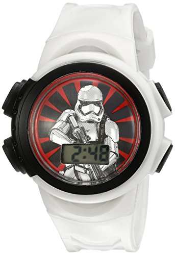 -. Binding : Watch -. Brand : Star Wars -. Color : White -. Department : boys -. EAN : 0049353947495 -. Feature : Fun plastic watch with white band in a cylinder tin / Watch has buckle closure; quartz movement; not waterproof / Quartz Movement / Case Diameter: 37mm / Not Water Resistant -. Label : Accutime Watch Corp. -. Manufacturer : Accutime Watch Corp. -. Model : SW7KD155CT -. MPN : SW7KD155CT -. PackageQuantity : 1 -. PartNumber : SW7KD155CT -. ProductGroup : Watch -. ProductTypeName : WATCH -. Publisher : Accutime Watch Corp. -. Studio : Accutime Watch Corp. -. Title : Star Wars Kids' SW7KD155CT Digital Display Quartz White Watch -. UPC : 049353947495