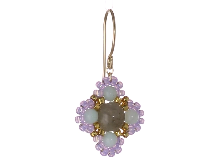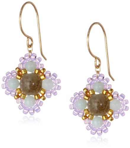 Miguel Ases Amazonite and Jade Small Flower Drop Earrings