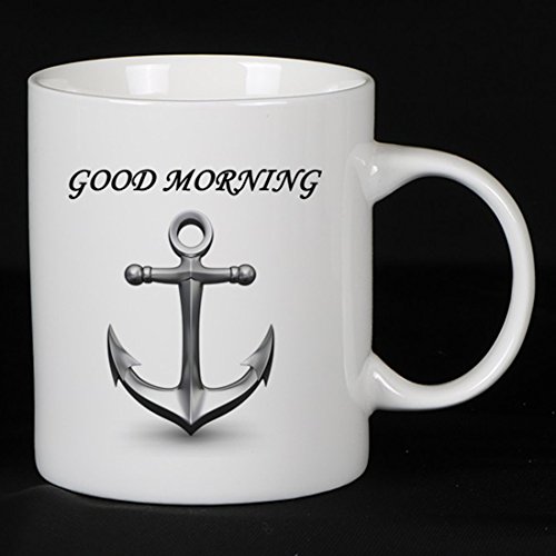 Onener Funny Mugs - Good Morning Anchor Ceramic Gift Coffee Mug Tea Cup 11 OZ (White)