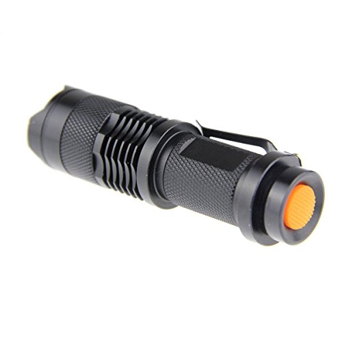- Material: 6061T Aluminium, brand new, high quality.Powered by: 1 x AA/14500 Rechargeable Battery(not included).It will be more brighter if use 14500 battery.