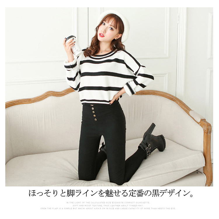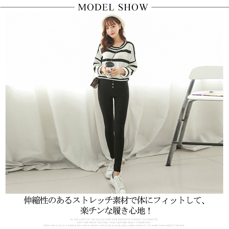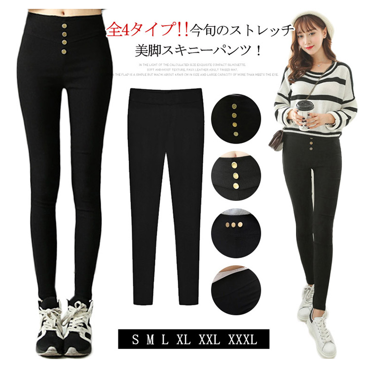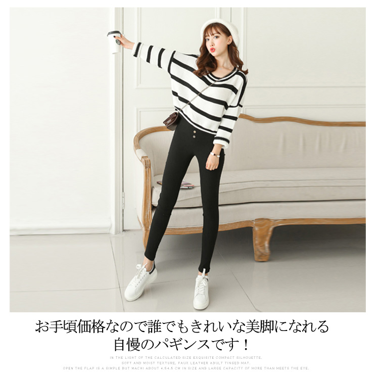 | 全4タイプ!!今旬のストレッチ美脚スキニーパンツ!伸縮性のあるストレッチ素材で体にフィットして、楽チンな履き心地!屈んだときも下着が見えにくいジャストウエスト丈はきちんと感もキープ。ほっそりと脚ラインを魅せる定番の黒デザイン。足首までの絶妙丈で、足元もたつかずスッキリと美脚に見せてくれます。お手頃価格なので誰でもきれいな美脚になれる自慢のパギンスです! | |