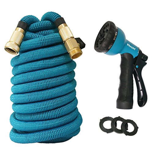 (Upgrade Platinum)Three-Time Expandable Garden Hose 3/4 in.x 100 ft. Latex Core High Tenacity Weaving Outer Cover Solid Brass Fittings 8 Function Nozzles Sprinkler Wear-Resistant