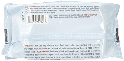 First Aid Beauty Gentle Cleansing Wipes gently yet effectively remove dirt, makeup, excess oil and impurities for a clean, clear complexion. Antioxidant-rich white tea extract nourishes, hydrates and protects against damaging free-radicals while cucumber water and aloe vera leaf juice soothe for healthy skin and a comfortable, refreshed feel. Feverfew reduces redness and calms irritation, promoting a beautiful, radiant look.Feature