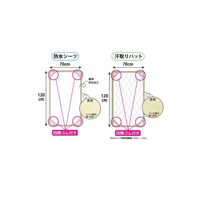 원본상품명: 綿100%パイル地 おねしょシ?ツ(防水シ?ツ)+汗取りパット2点セット(70×120cm)