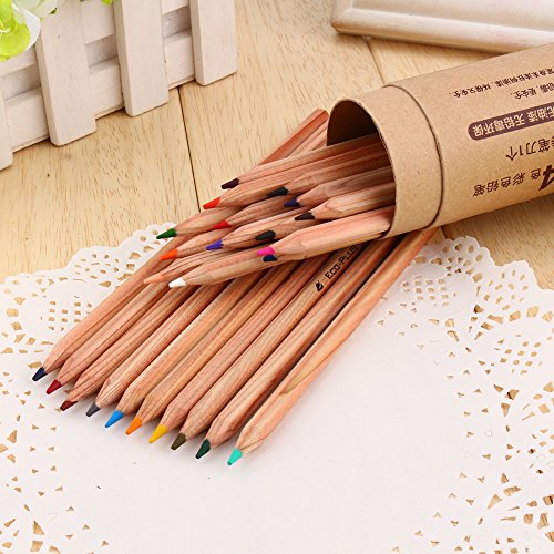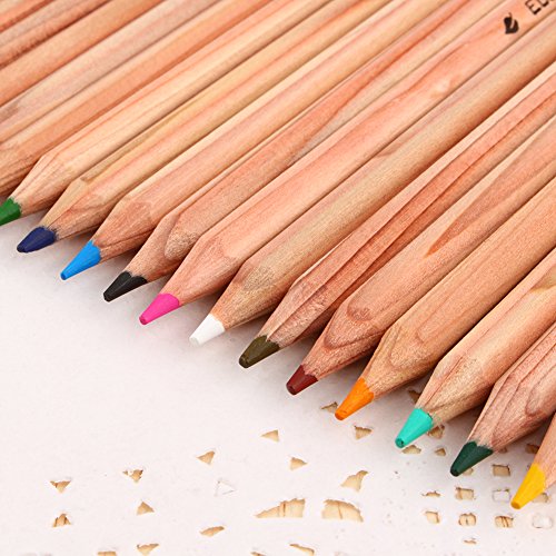 -. Feature : External Material :Wood; Water soluble: watercolor / Size :17.5cm*0.7cm / Non-toxic series , Easy color, delicate , Color persistence , High-quality Not easily broken / Refill 3MM, located in the middle of the pen body, not easily broken / Triangle pen, easy to grip and help reduce body fatigue, ergonomic