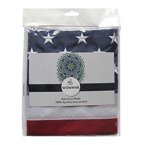 WOWMAR American Flag 2x3 Foot 100% Made In USA Nylon -Embroidered Stars Sewn Stripes-4 Rows of Lock Stitching USA Banner Flags with Brass Grommets 210D Quality Oxford Nylon (2X3 FT, US Flag) by