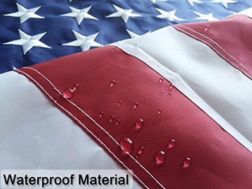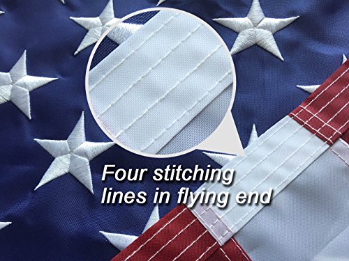 ✦100% MADE IN USA✦ - When you buy the american flag ,you honor the veterans who fought for the us flag, freedom and future.Beautifully crafted, especially the top notch embroidery on the stars. The stars are embroidered using densely filled rich white thread. The nylon stripes are sewn together with two rows of lock stitches for added strength. Four rows of stitching on the fly hem improves durability, will ensure a longer lasting flag.