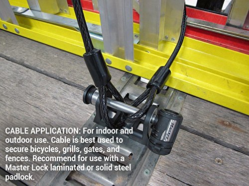 CABLE APPLICATION: For indoor and outdoor use; Cable is best used to secure bicycles, grills, gates, and fences; Recommend for use with a Master Lock laminated or solid steel padlock
