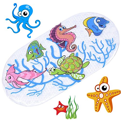 Design: Cute cartoon shower mats for kids, attracts children’s attention instead of moving around, makes bathing time more interesting. The sleek design and bubbly texture will decorate your bathroom