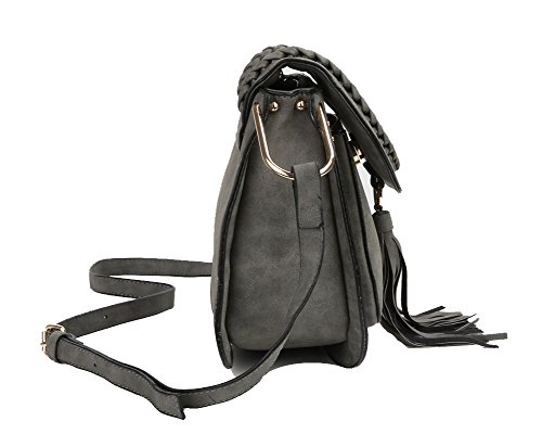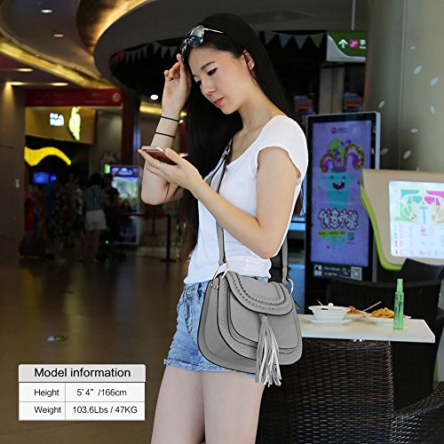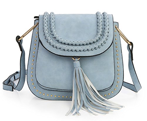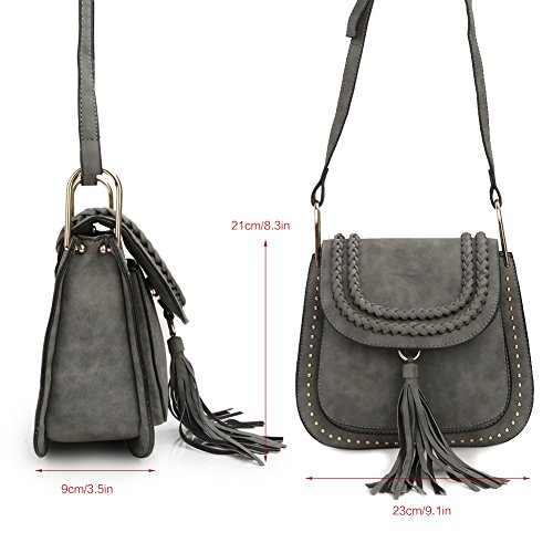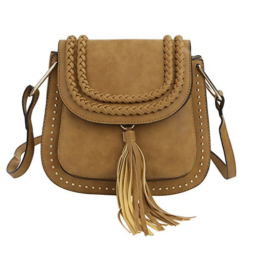 Zicac Rivet Cross Body Pu Leather Bag Saddle Bag Braided Shoulder Bag with Tassel for Women Girls Material: PU Leather