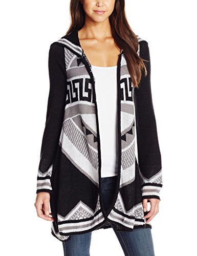 -. Title : Derek Heart Junior's Aztec Jacquard Bell Long Sleeve Hooded Cardigan Sweater